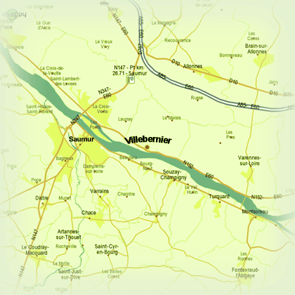 Suivre la Nationale 147 jusqu'à Saumur, puis prendre la Nationale 152